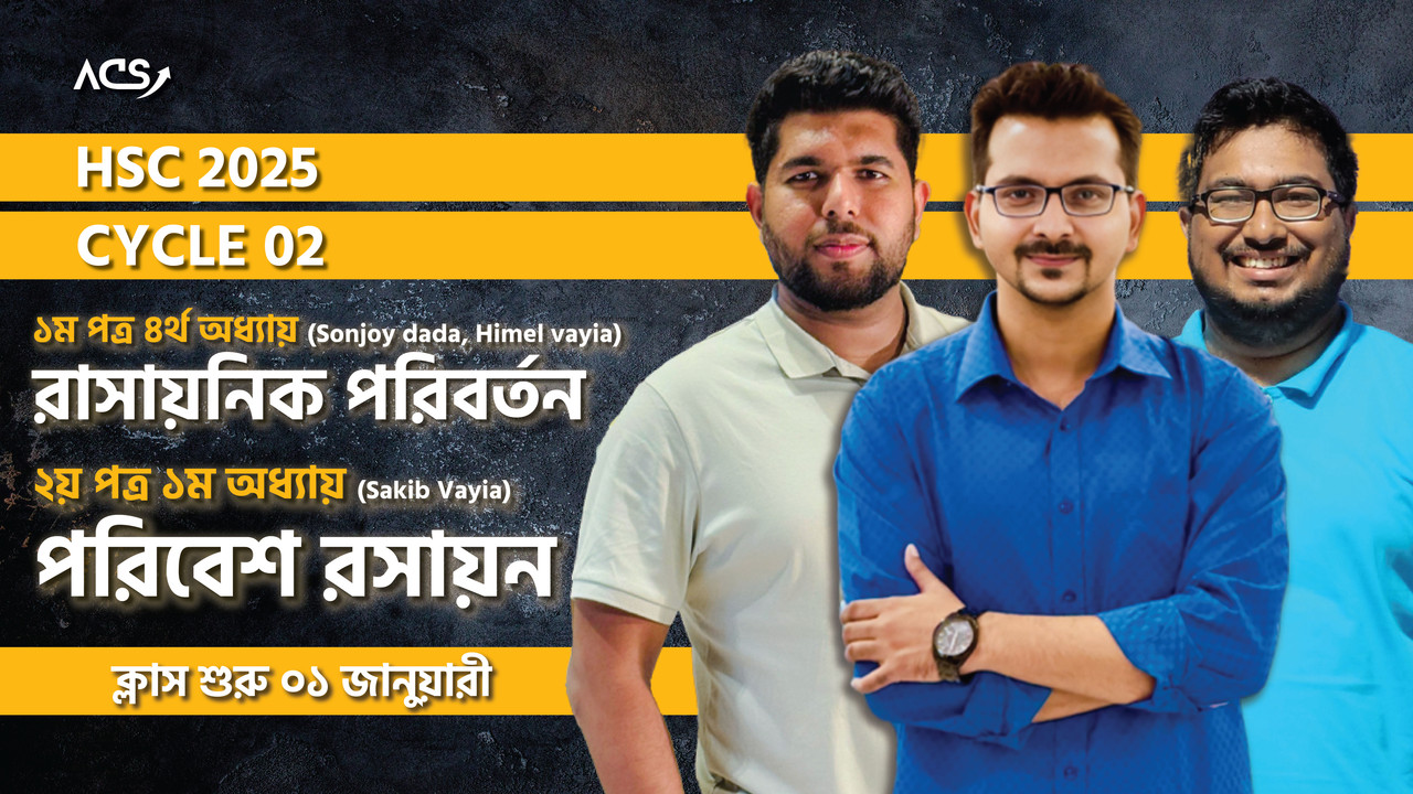 এই বার তোমাদের ক্লাসগুলো নিবে কেমিস্ট্রির লিজেন্ড Sanjoy Sir এবং তোমাদের প্রিয় Nazmus Sakib ভাইয়া।