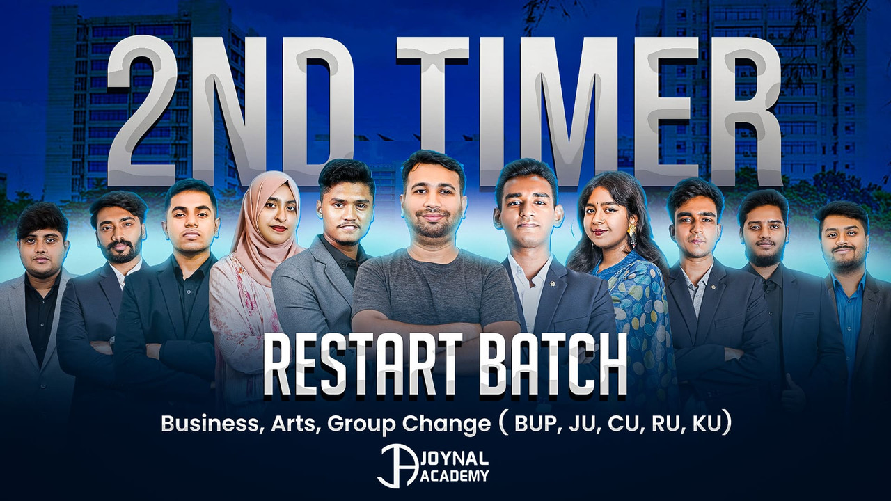2nd Timer Restart Batch একটি কম্পেক্ট কোর্স যেখানে তোমার প্রস্তুতি হবে গোছানো । যারা BUP, JU, CU, RU এবং KU-এর মতো শীর্ষস্থানীয় পাবলিক বিশ্ববিদ্যালয়ে ভর্তির লক্ষ্যে ...